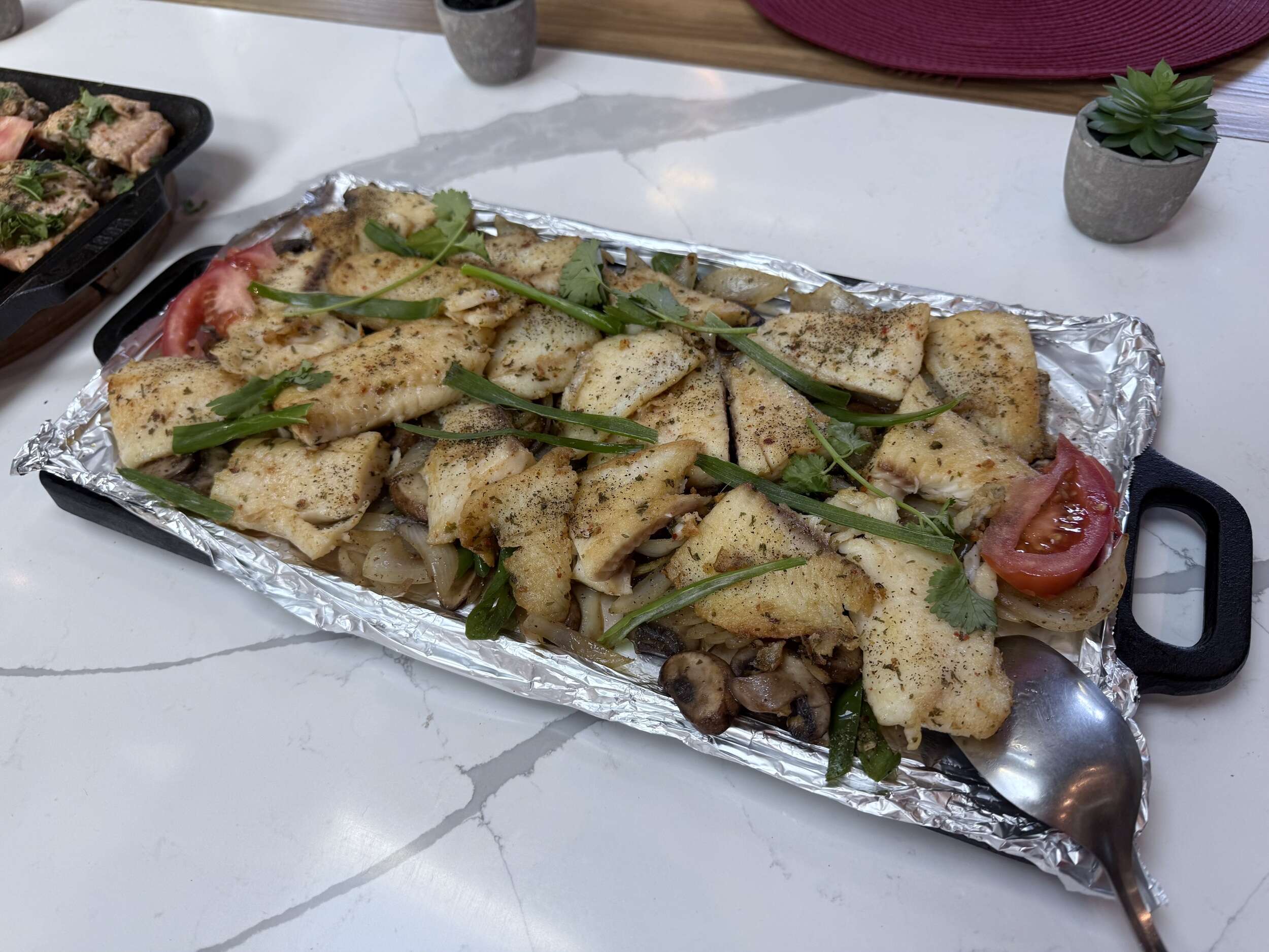 A05A-Fish Fillet Fried with Onion and Mushroom,  Finger Torn Cabbage, Steam Rice or Fried Rice;