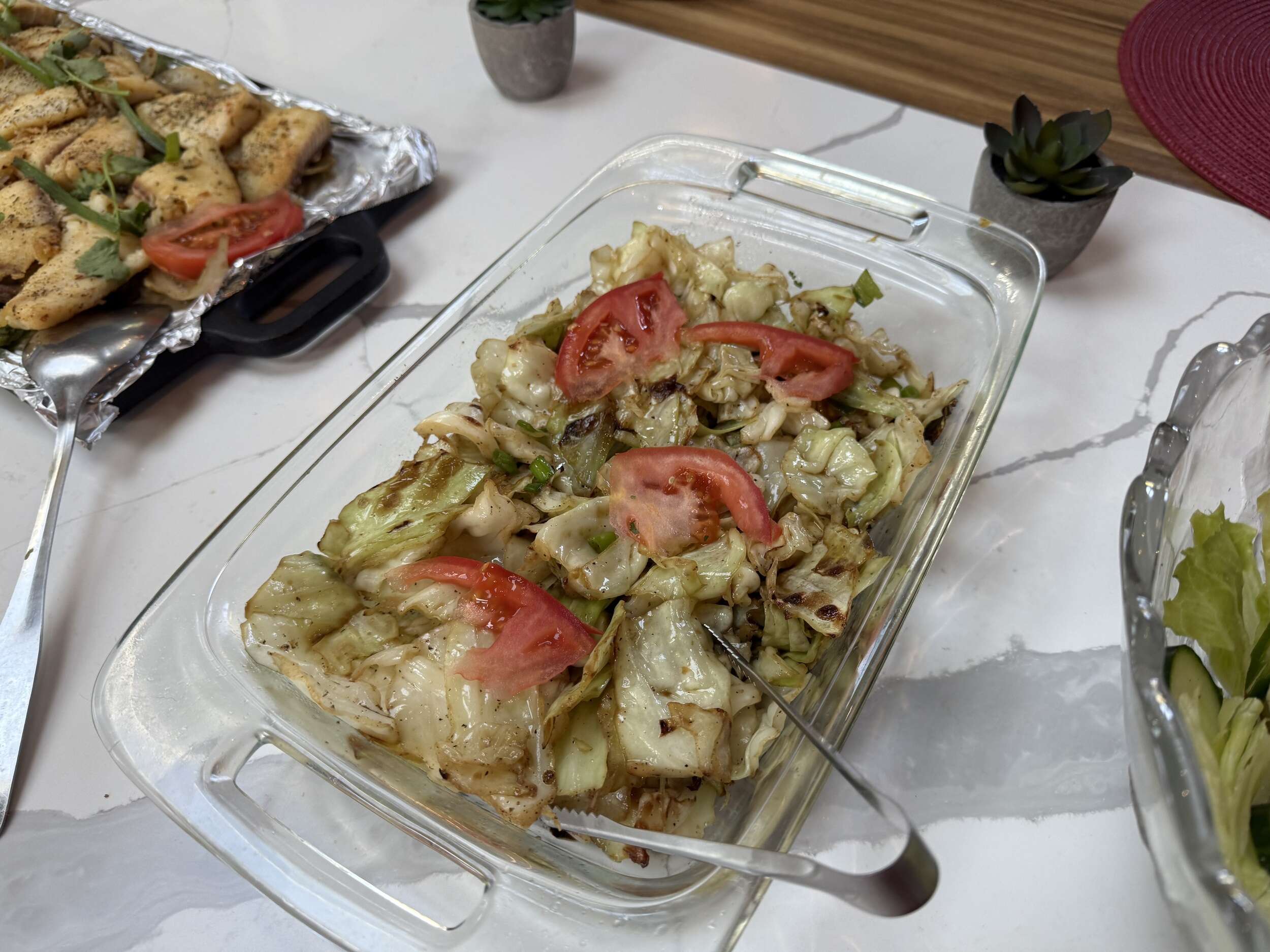 A05B-Fried Shrimp with Onion and Mushroom, Finger Torn Cabbage, Steam Rice or Fried Rice;