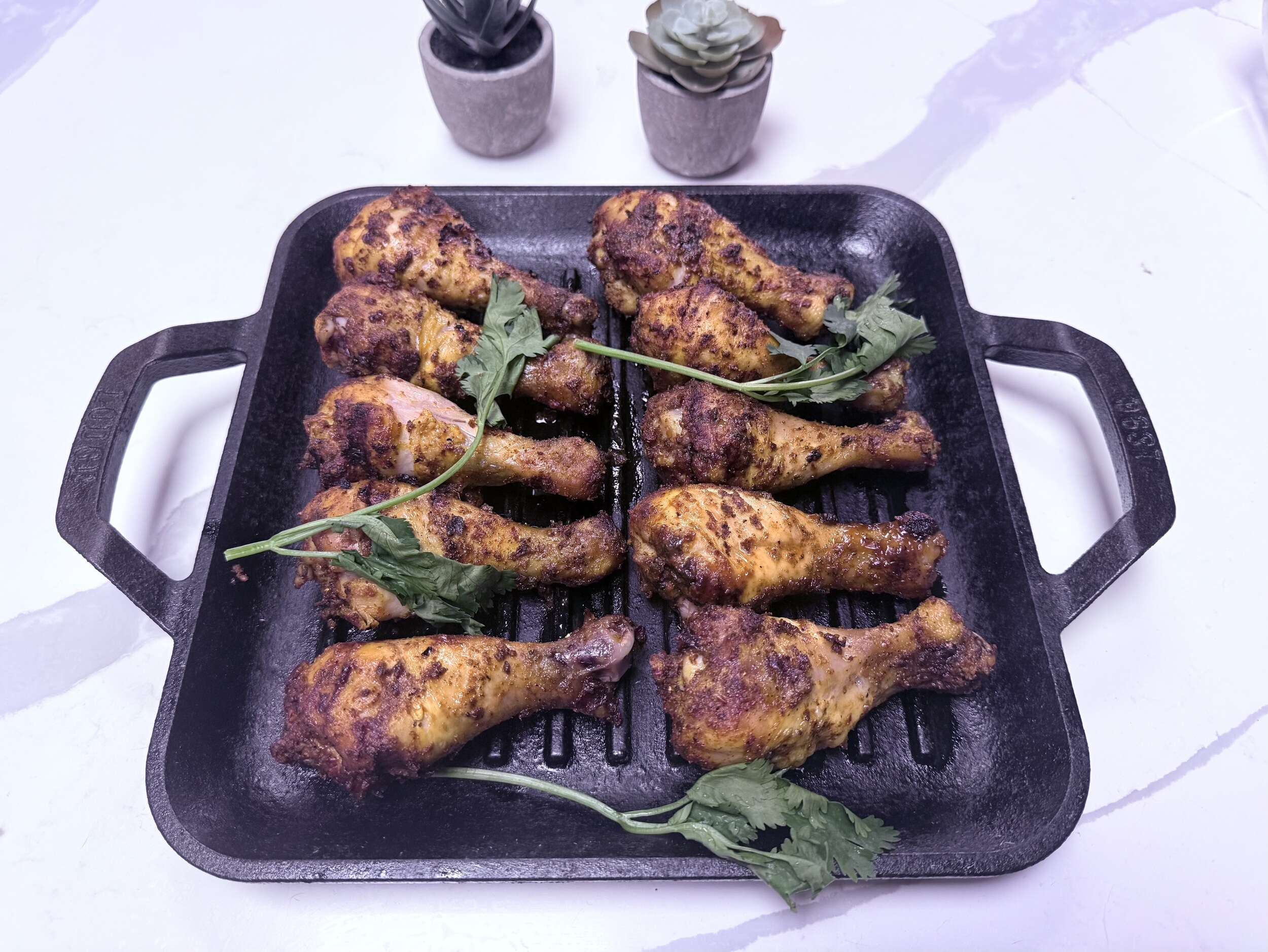 A09-Grilled Curry Chicken Drumsticks served with Salad, Pickles and Fried Rice