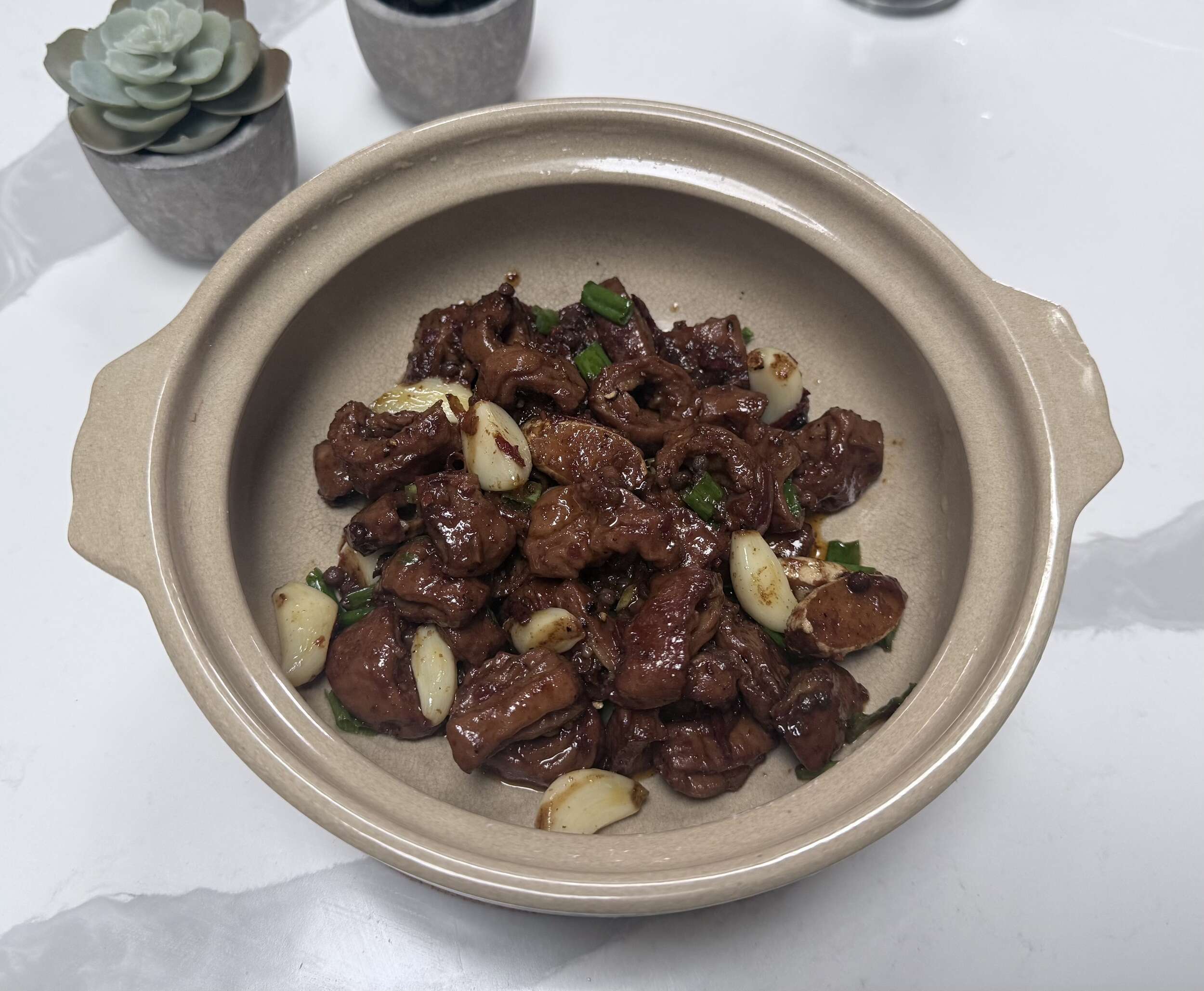 B05A-Hunan Tujia Pork Intestines Braised in Clay Pot, Served with Napa Cabbage, Pickles and Steamed Rice