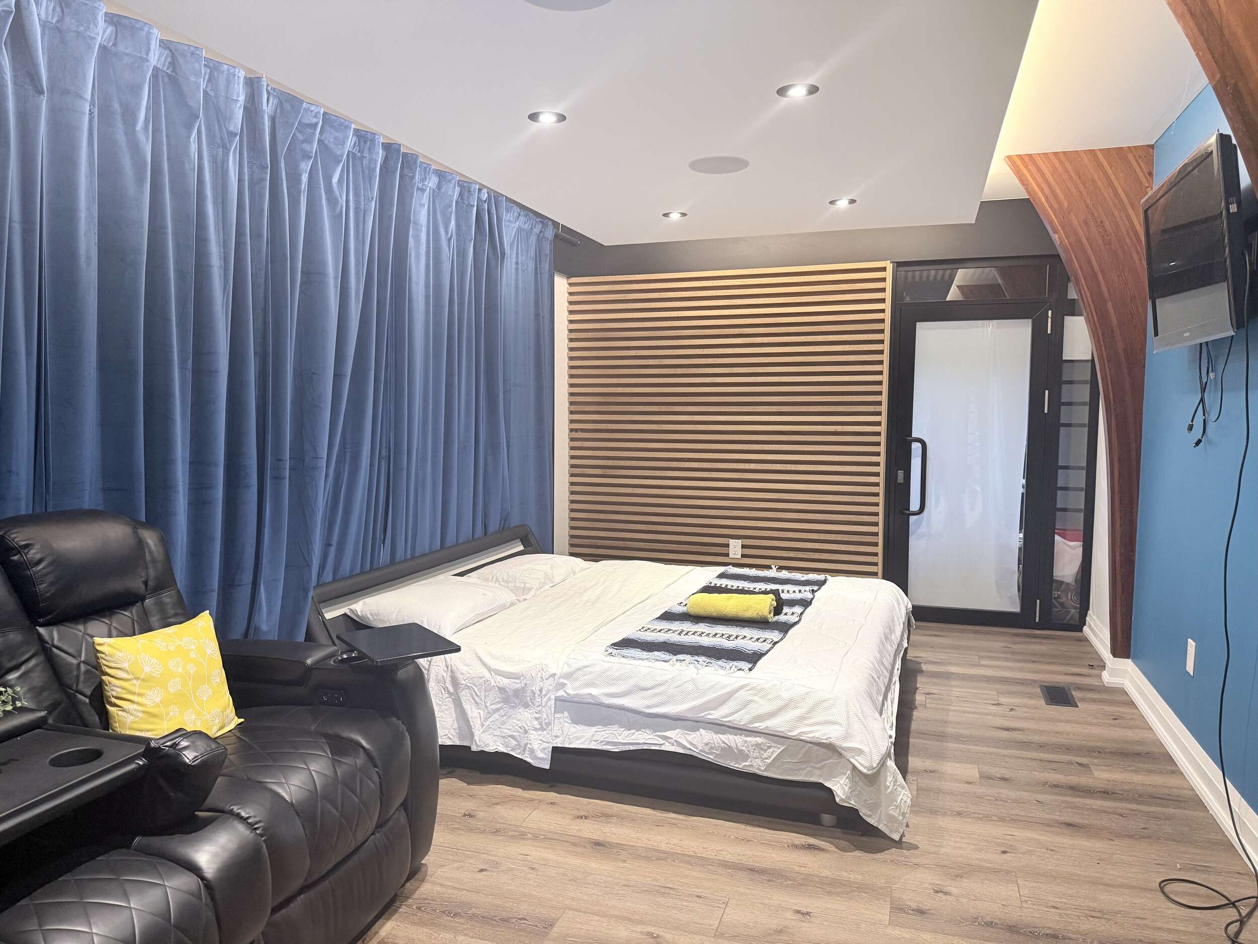 This Modern Room is Located on the Main Floor, Furnished with 1 Queen Bed plus 1 Single Bed;  Shared Washroom;