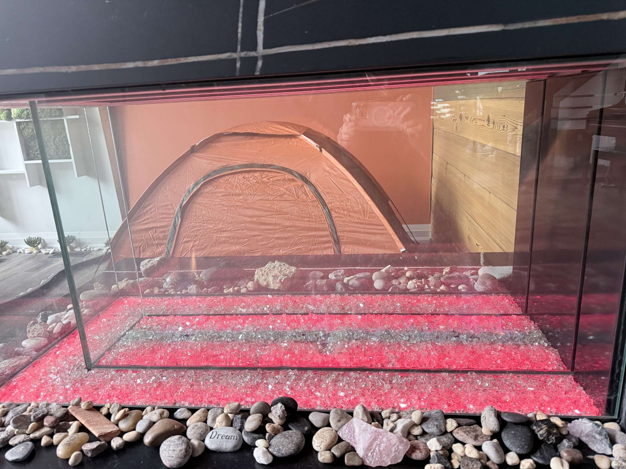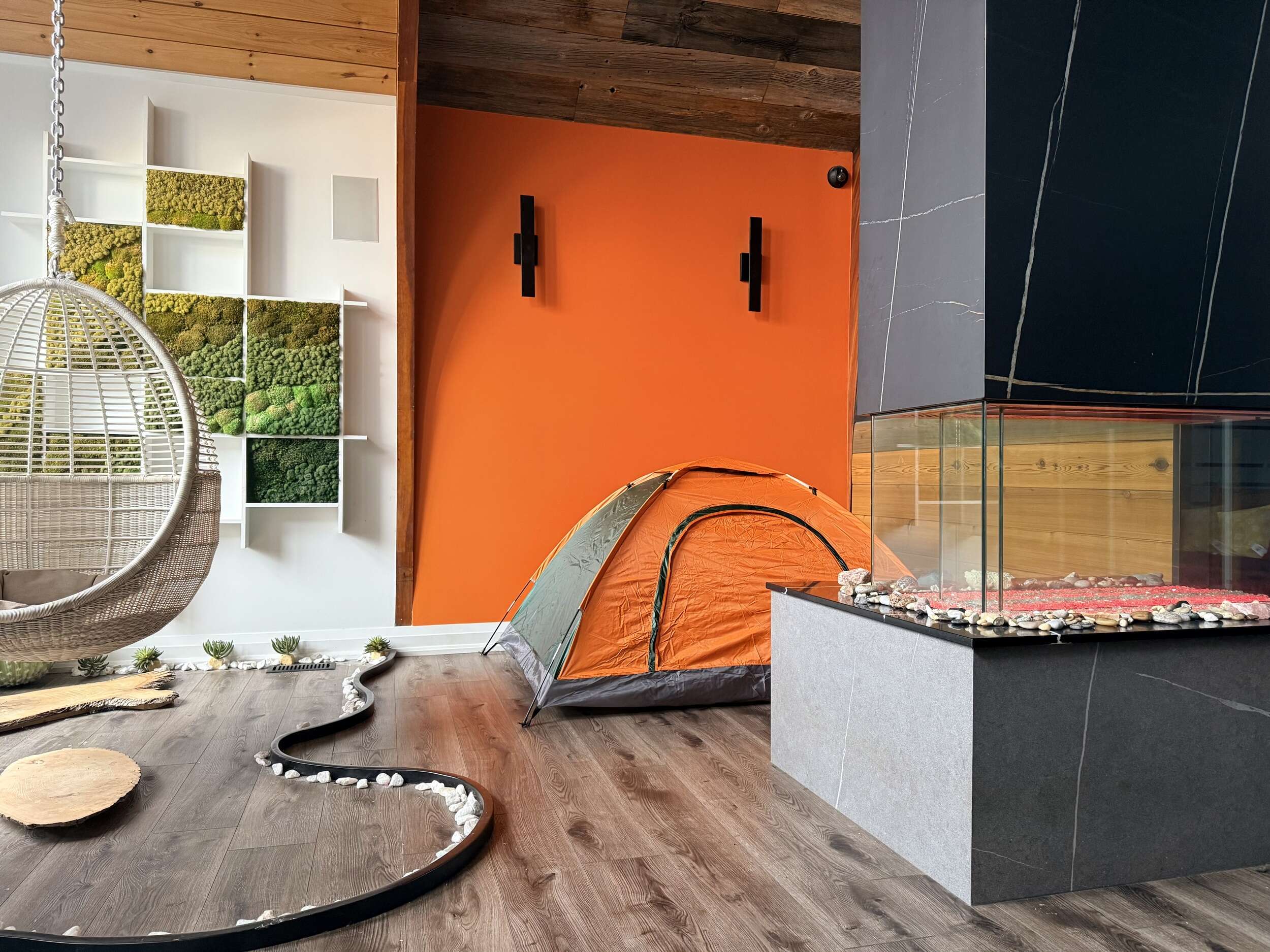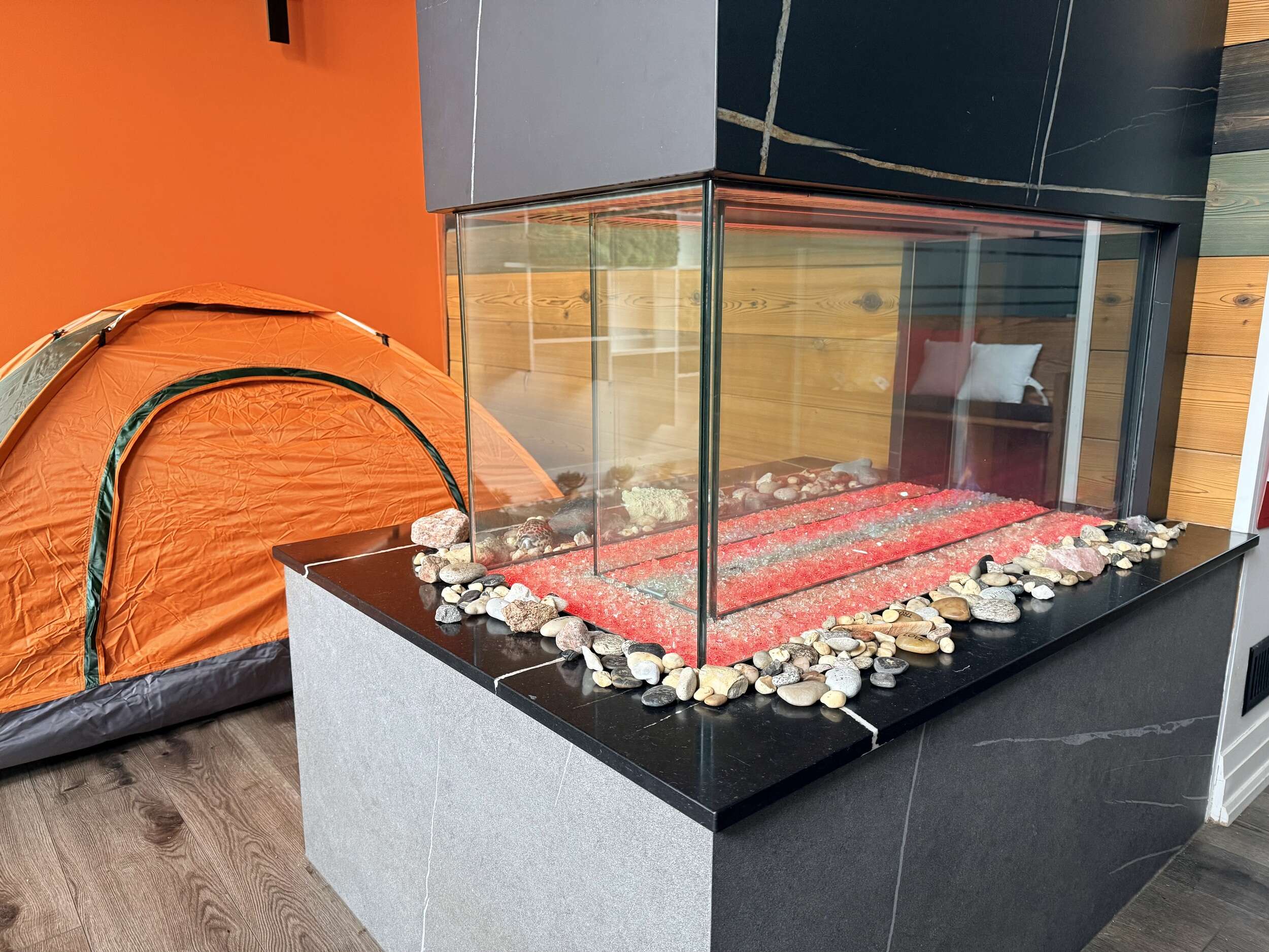 This Tent by Davinci Fireplace is for 1-2 Persons; Furnished with 1 Double Mattress; Shared Washroom;